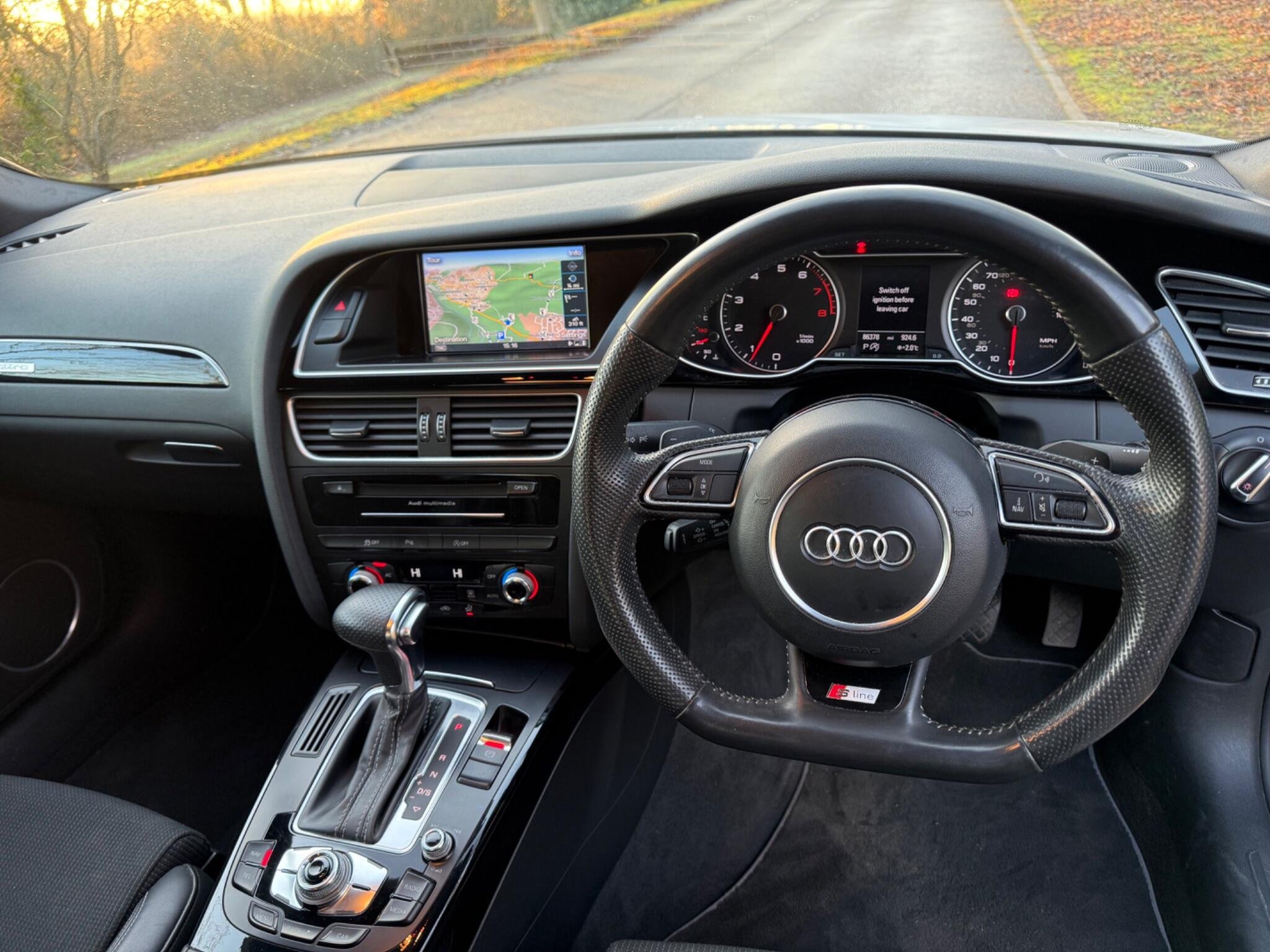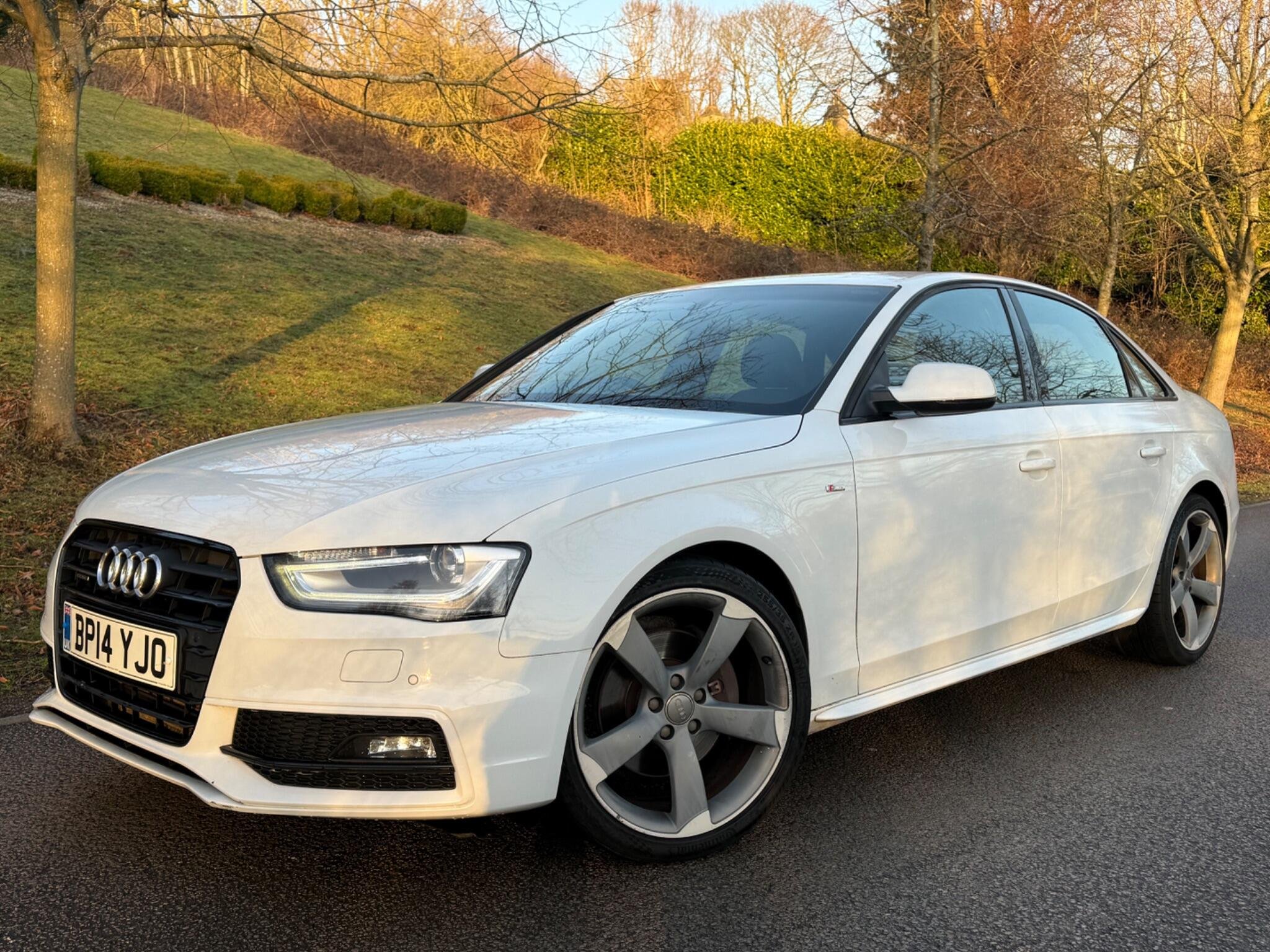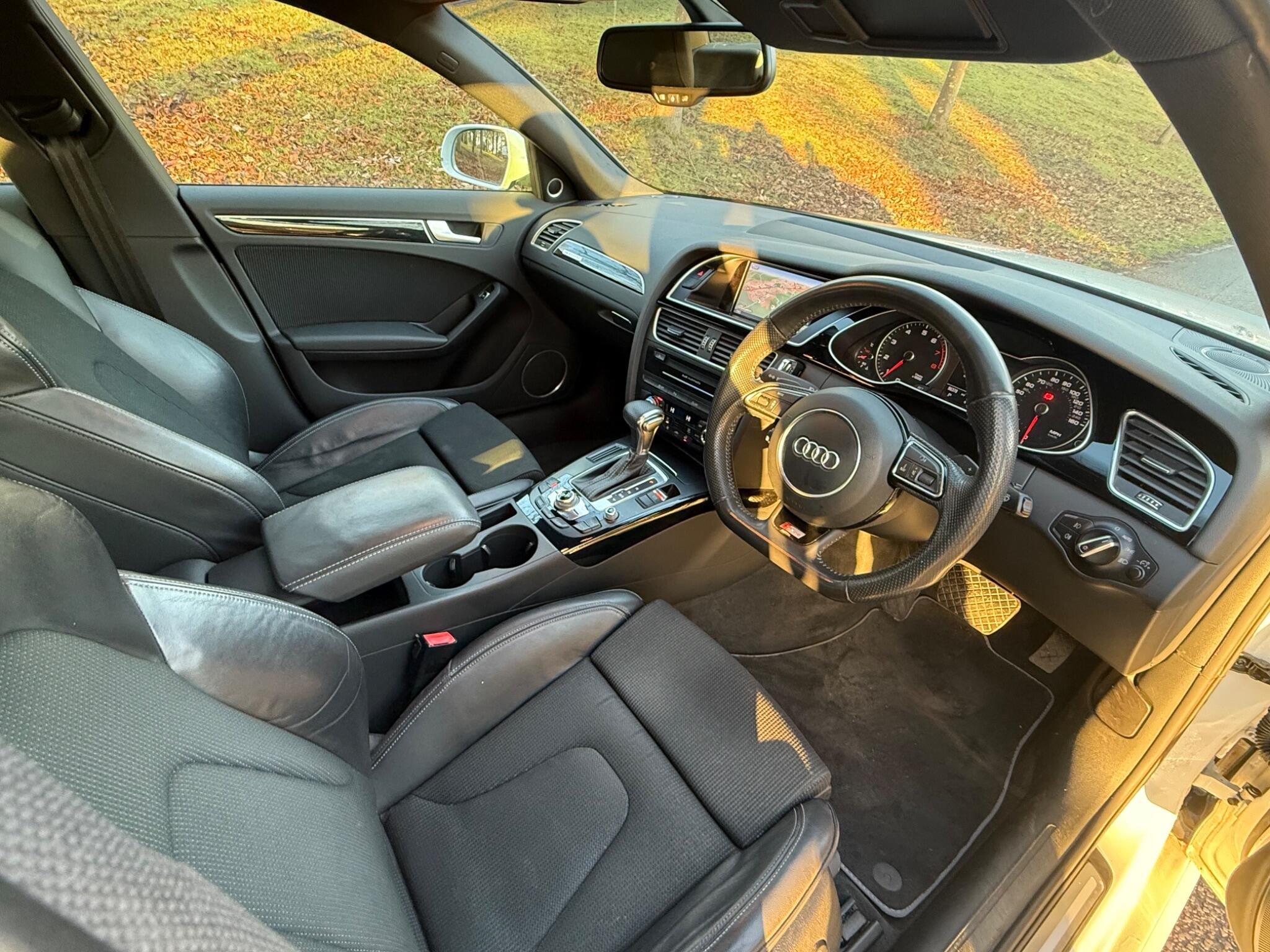 This 2014 Audi A4 TFSI Black Edition offers a compelling blend of performance and refinement, having been cherished by only two owners. As a Euro 6 compliant model, it features a potent 2.0 litre petrol engine paired with Audi's renowned four wheel drive system, ensuring confident handling in all conditions. The Black Edition trim enhances its sophisticated appearance, while practical features such as mobile telephone preparation with Bluetooth, a premium Bang and Olufsen sound system, and electronic three zone climate control provide a comfortable and connected driving experience. Automatic headlights activated by a light sensor and rear parking sensors further add to the convenience and safety of this well appointed vehicle.