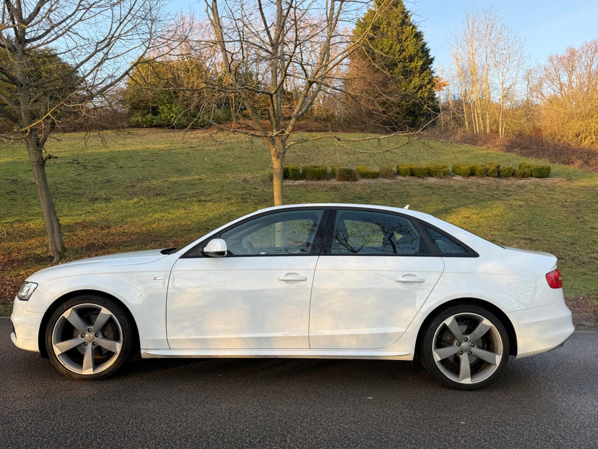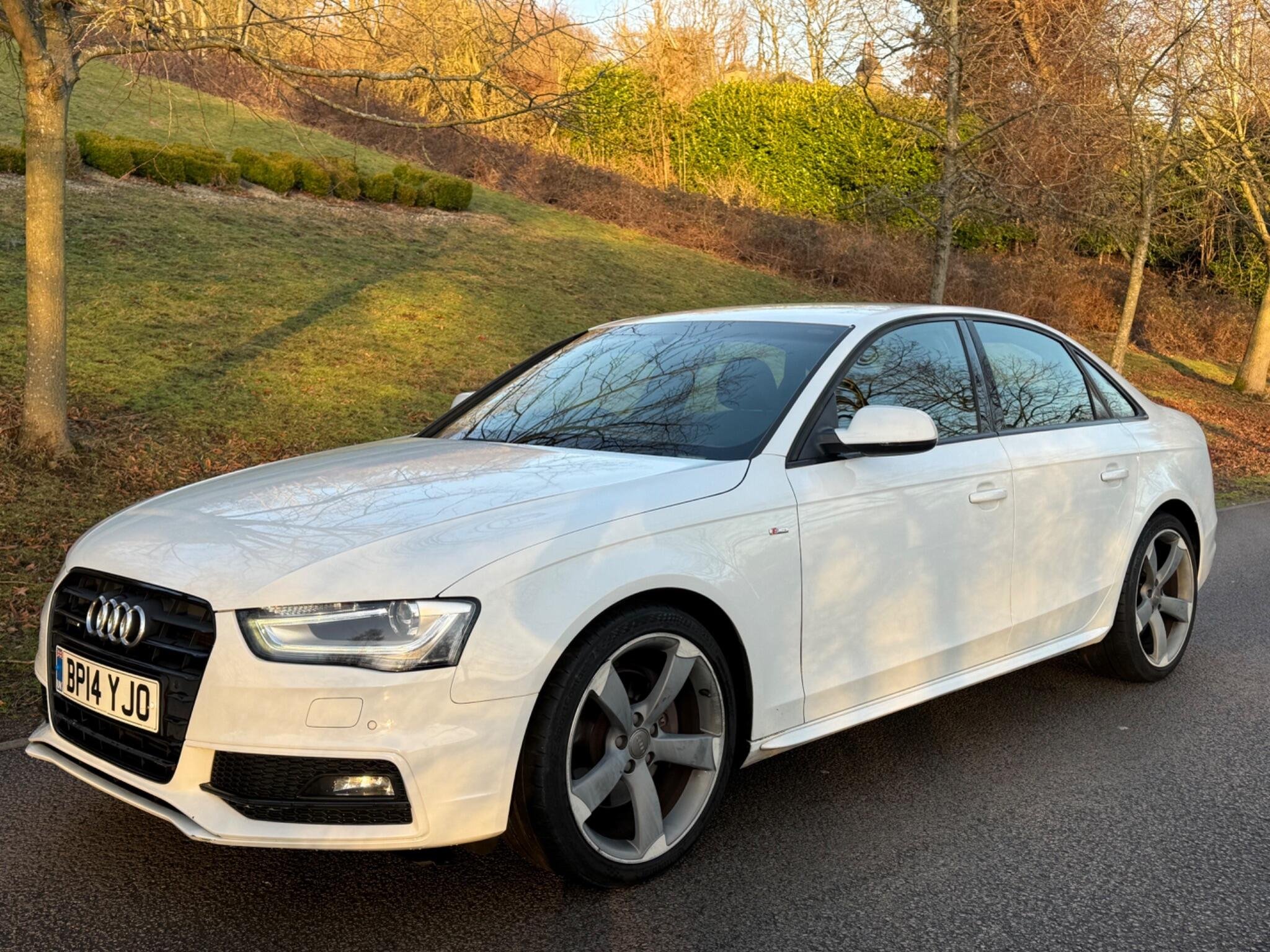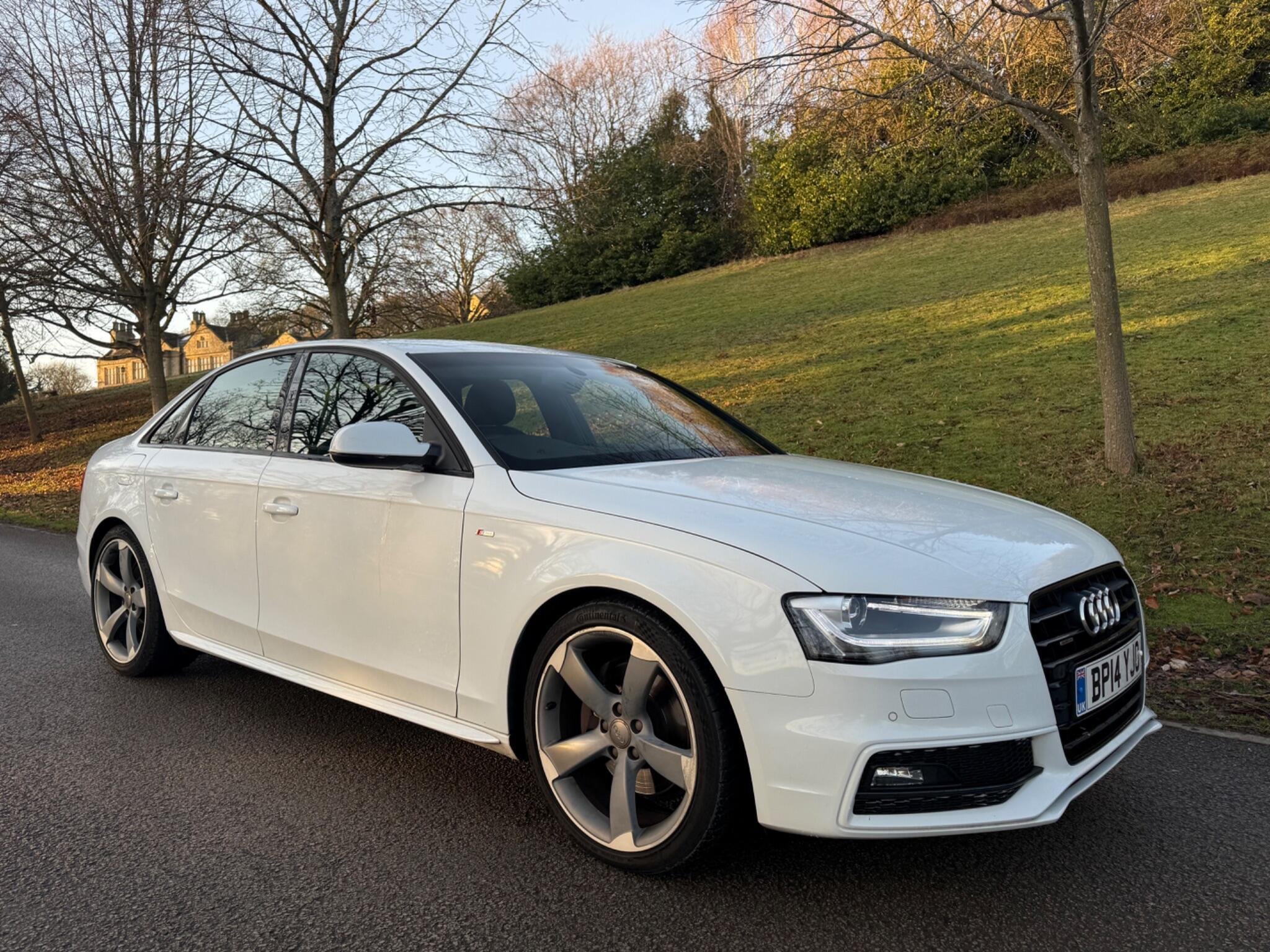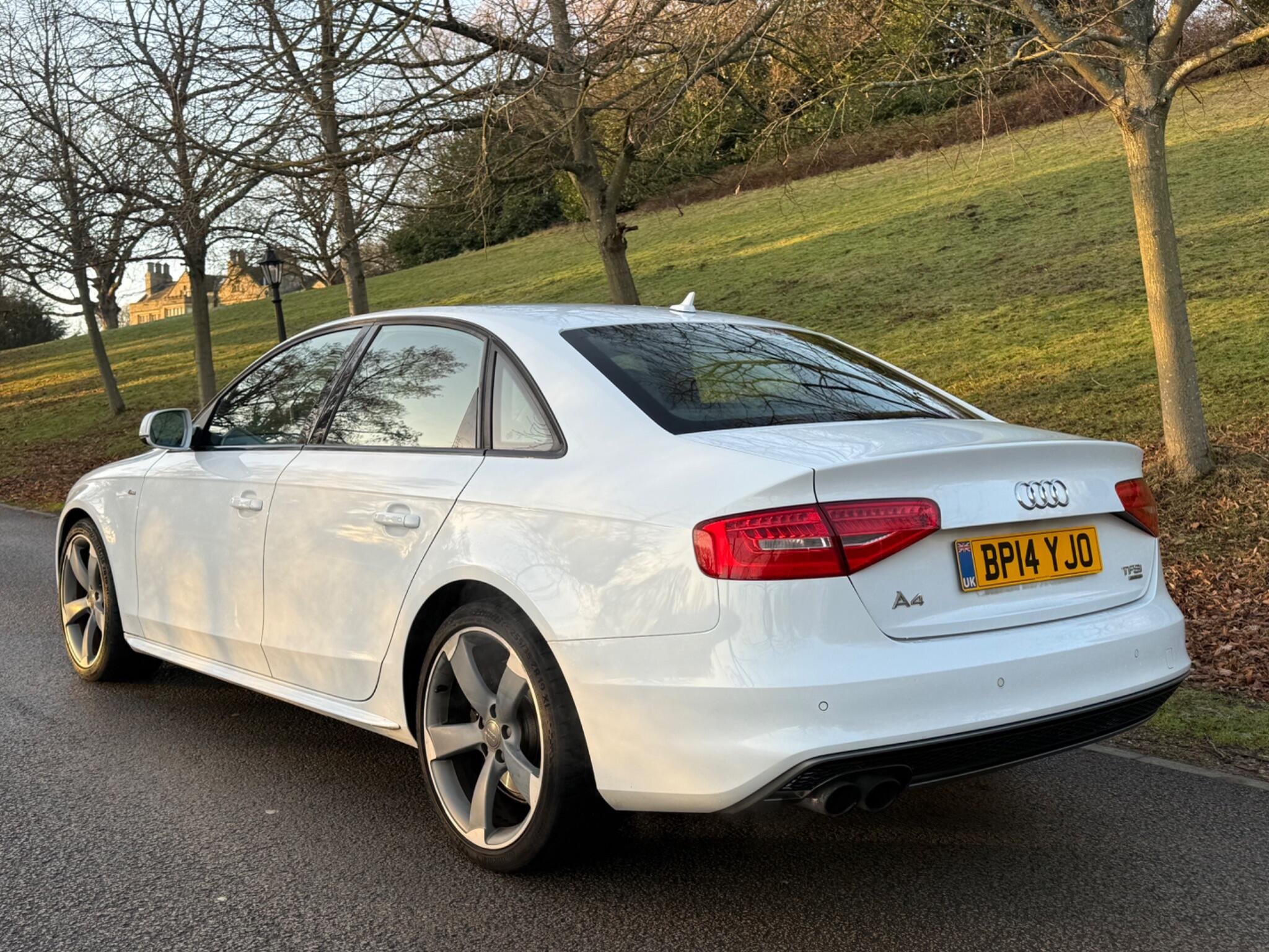 This 2014 Audi A4 TFSI Black Edition offers a compelling blend of performance and refinement, having been cherished by only two owners. As a Euro 6 compliant model, it features a potent 2.0 litre petrol engine paired with Audi's renowned four wheel drive system, ensuring confident handling in all conditions. The Black Edition trim enhances its sophisticated appearance, while practical features such as mobile telephone preparation with Bluetooth, a premium Bang and Olufsen sound system, and electronic three zone climate control provide a comfortable and connected driving experience. Automatic headlights activated by a light sensor and rear parking sensors further add to the convenience and safety of this well appointed vehicle.